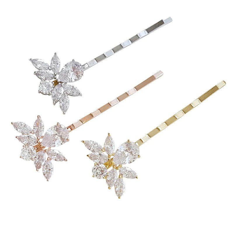 CZ Leaf and Teardrop Hairpin (Sold in Sets of 2) – Available in Gold, Silver and Rose Gold Finishes