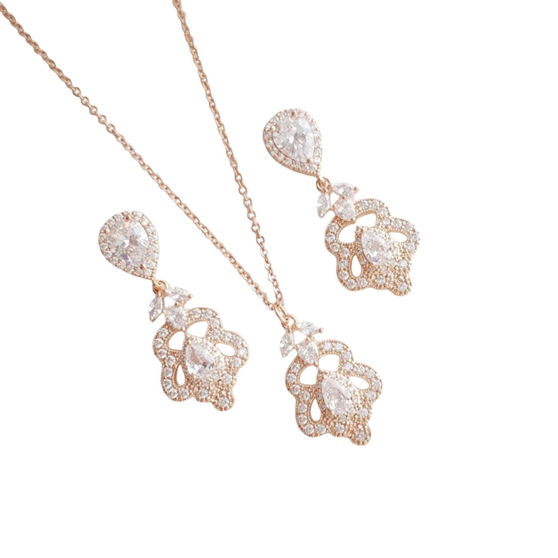 CZ – Antique Inspired CZ Pendant Necklace and Earring Set: Available in Gold and Rose Gold Finish (Necklace and Earring may also be purchased separately)