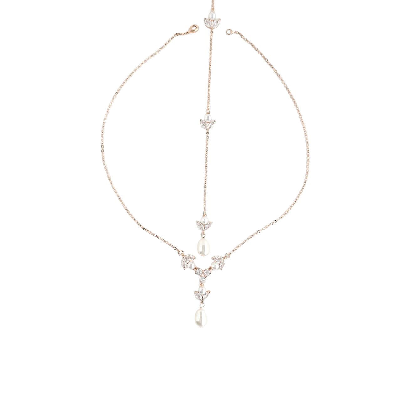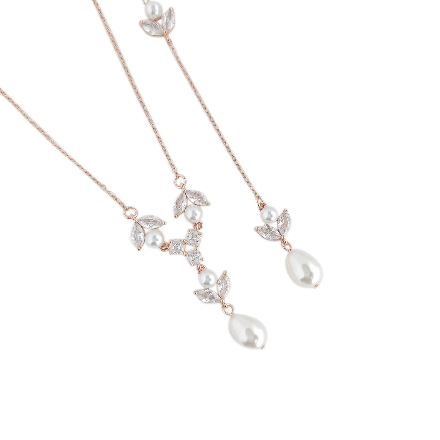 Backdrop – Detachable Backdrop Necklace with Marquis CZ’s and Pearl: Available in Silver, Gold and Rose Gold Finishes
