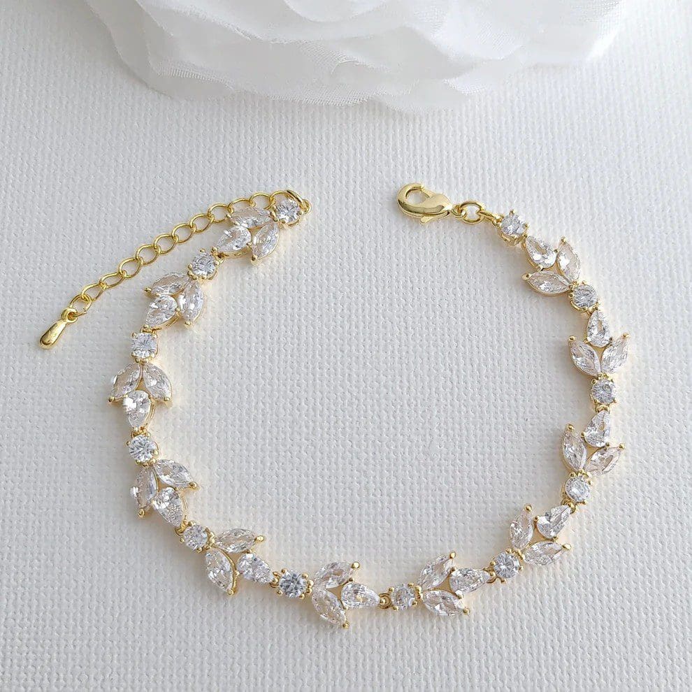 Backdrop – CZ in Tulip-Like Pattern Necklace, Bracelet and Earring Set: Available in Gold, Silver and Rose Gold Finishes