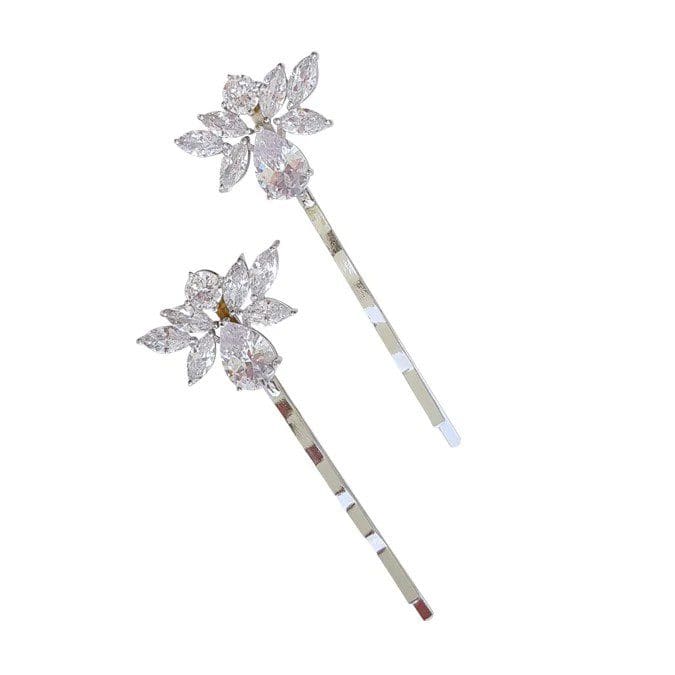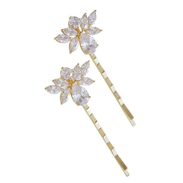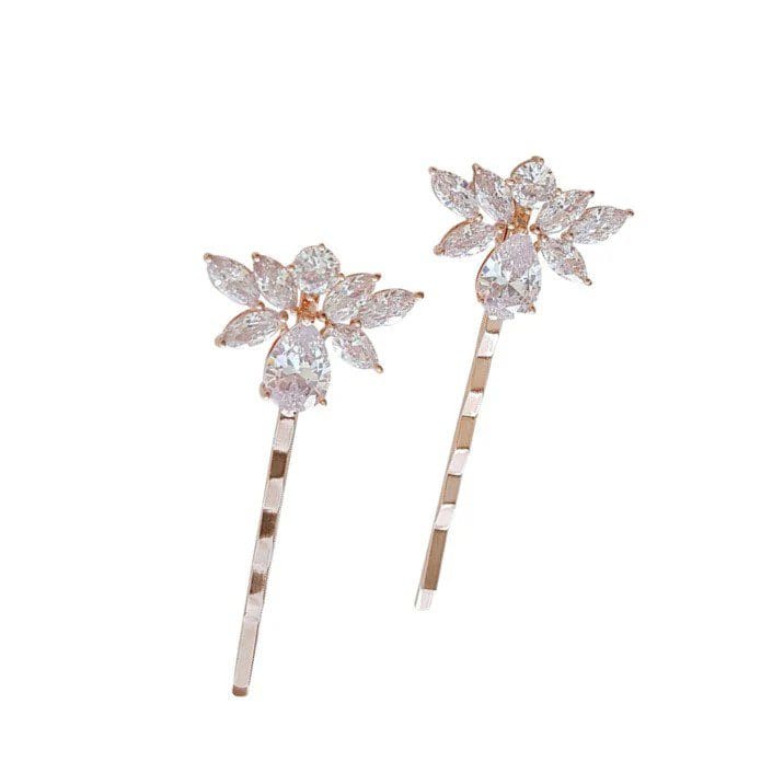CZ Leaf and Teardrop Hairpin (Sold in Sets of 2) – Available in Gold, Silver and Rose Gold Finishes